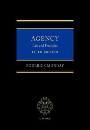 Questions of agency regularly arise in the work of commercial practitioners. Agency: Law and Principles, now in its fifth edition, addresses these questions by offering a clear and accessible analysis of the principles of agency law and the concept of agency. Forensic analysis of the most up-to-date case law is combined with a practical approach to the law which accurately reflects modern commercial realities, considering the application of agency principles according to particular classes of agents operating in the major commercial sectors. Areas discussed include actual and apparent authority of an agent, agency of necessity, sub-agency and termination of agency, want of authority and ratification looking at the legal relations between principal and agent, as well as the relations between agent and third party.