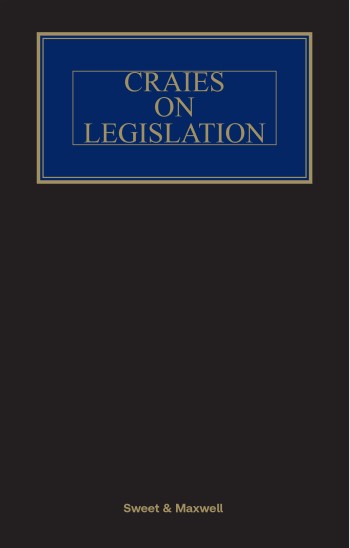 Craies on Legislation is the complete practitioners' guide to the nature, process, effect and interpretation of legislation. It is regularly cited to and by the higher courts, and it is relied upon by lawyers in the public and private sectors for shedding light on the widest range of questions in relation to how legislation is made, applied, challenged and interpreted.