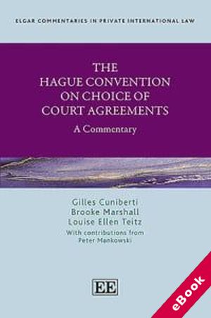 This Commentary provides comprehensive analysis of the 2005 Hague Convention on Choice of Court Agreements that came into force in October 2015. Drawing on the contributors’ expertise from a range of legal traditions, including Commonwealth and US common law, as well as French and German civil law traditions, it presents an article-by-article examination of the Convention. Each provision is carefully examined using diverse perspectives to ensure an in-depth understanding of its history, context and meaning. The Commentary outlines past scholarly research, controversies arising from interpretation as well as indicating avenues for future study.